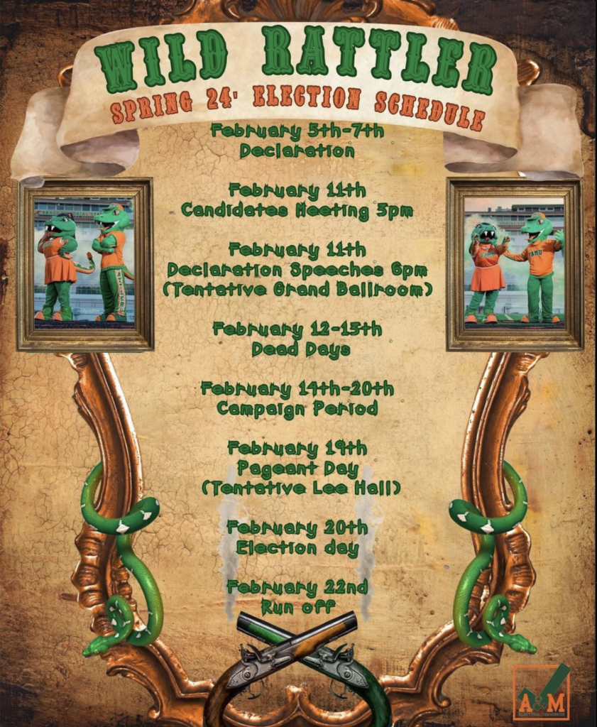 Graphic of the 2024 campaign season schedule. Photo courtesy of @famuelections on Instagram
